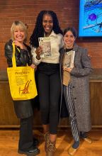 The amazing Juliana Lamy, Devon Walker-Figueroa, and Ploughshares tote bag